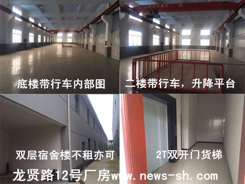 物业一:奉贤区青村镇龙贤路128号,厂房独门独院,总建筑面积4668平方米,厂房1栋双层车间,底楼车间层高9米,面积为1972平方;二层层高7米,长66米,宽18米,面积约910平方;两层楼车间内部均配有行车,钢混结构;1栋办公楼面积1034平方米,共五层,内部精装修,配有1部2T货梯,另有1栋双层宿舍食堂,面积1001平方米,配电150KVA。厂区场地宽敞,水、电、卫生间等配套设施齐全。适合于:机械生产、加工、五金、模具、冲压、制造、装配、机电、电器元配件等各行业,租金:0.6元天平方米。欢迎各企业现场参观及详情面洽!