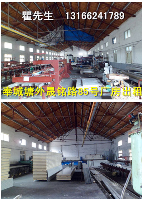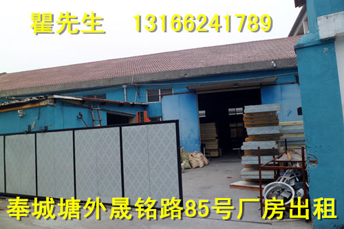奉贤塘外单层厂房出租厂房位于奉城塘外工业区晟铭路85号,紧邻航塘公路 平庄东路,距G1501高速出入口3分钟车程,单层厂房出租,面积1300平方米,层高6.5米,中间无立柱,配有独立办公区及宿舍区,厂区水电全,适合各类生产加工、仓库等企业,租金0.7元/平方米/天,详情面议联系人;瞿先生 13166241789 50881769 奉贤区 塘外晟铭路85号