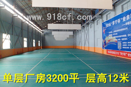 单层厂房出租,面积3200平方米,层高12米,带行车,车间装修过,水电全。适合各类生产加工、仓储、运动场馆、产品组装展示等企业,可分割不等面积出租。租金面议,欢迎现场参观考察。