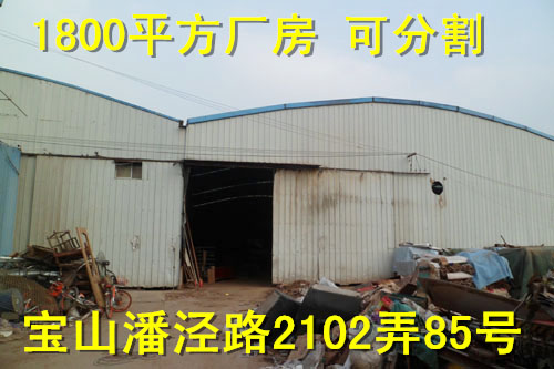 宝山罗店单层厂房出租 可分割厂房位于宝山罗店工业区潘泾路2102弄85号,月罗公路与潘泾路交叉口,距地铁7号线3公里。独门独院单层厂房出租,面积1800平方米,层高8米,可分割成800/1000平,配有双层办公室,厂房租金0.85元/平方米/天,适合小加工、仓库等,详情面议联系人:王先生 18955065577