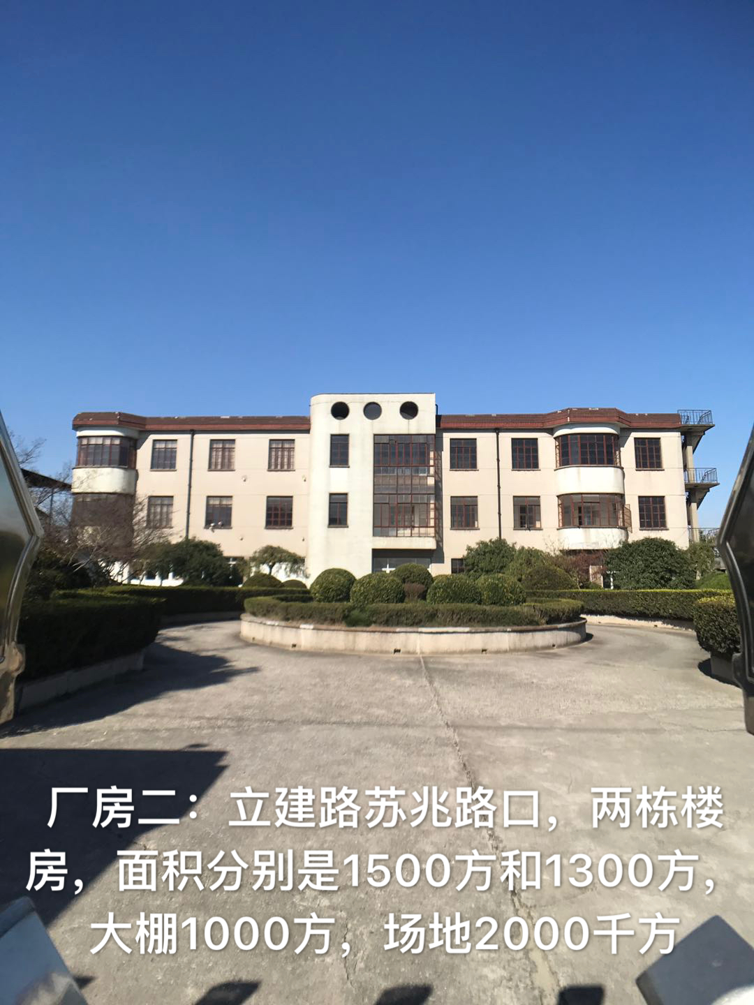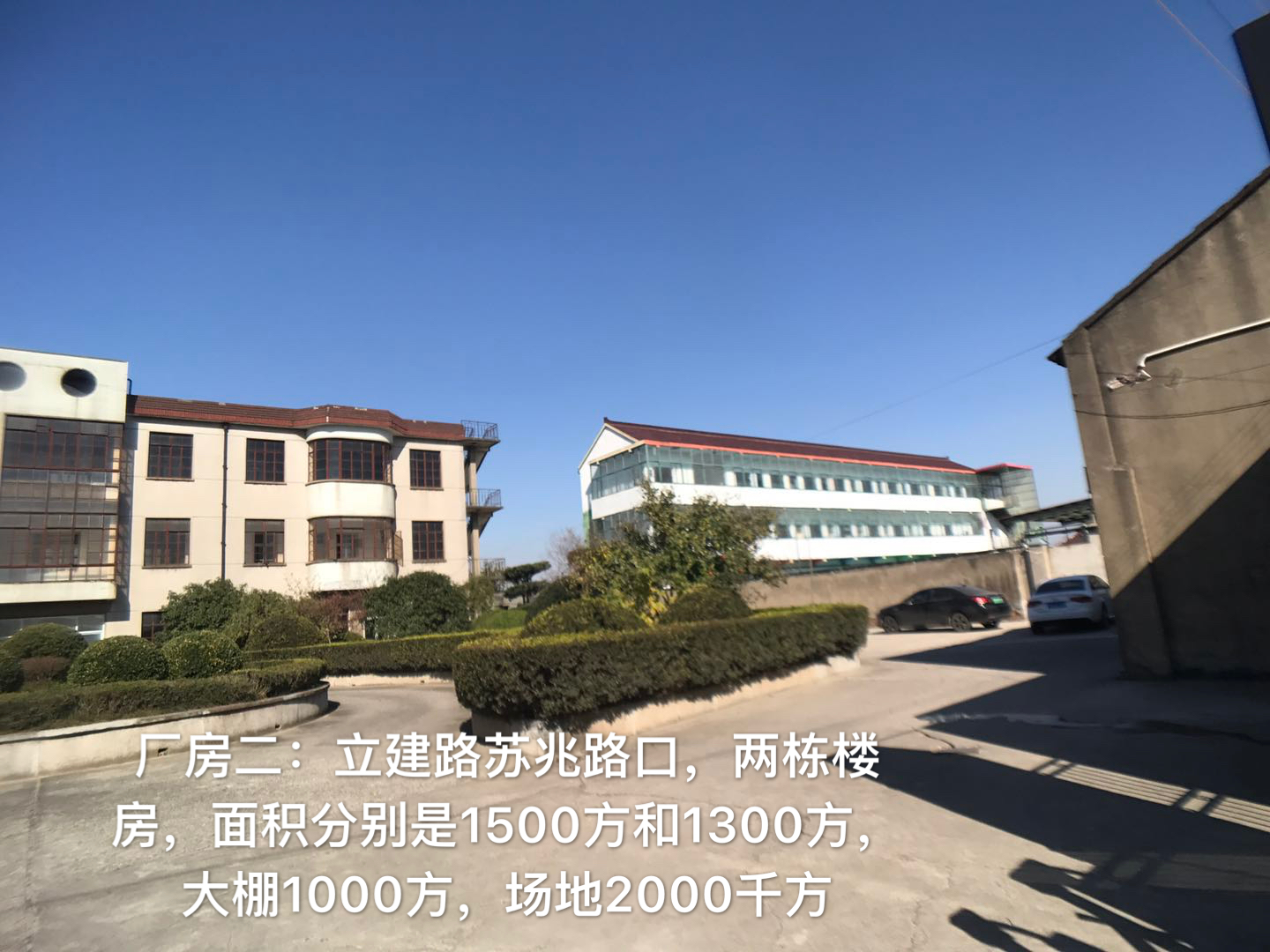 2:立建路苏兆路口,两栋楼房,面积分别是1500方和1300方,大棚1000方,场地2000千方。 价格:厂房和大棚的价格是1.7每平米每天,场地是0.3元每平米每天