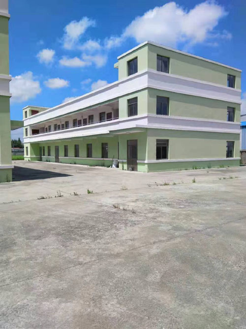 一栋二层砖混框架结构厂房56m*46m*5m,带2吨载货电梯;一栋二层车间层的办公楼約1.680m,一栋二层宿舍楼,底层为食堂約1000m;